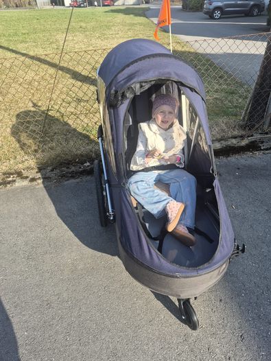 Mit einem Teil eurer Spende konnte für Mia ein Special‑Needs‑Fahrradanhänger gekauft werden.