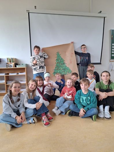 Mia hat am Dienstag die 3a besucht. Wir haben mit ihr gesungen, gebastelt und Ball gespielt. Sie half dabei, die Kügelchen auf unseren Christbaum zu kleben, was ihr sichtlich Freude bereitete. Es war ein sehr schöner Besuch, und Mia durfte den Baum als Erinnerung mit nach Hause nehmen.